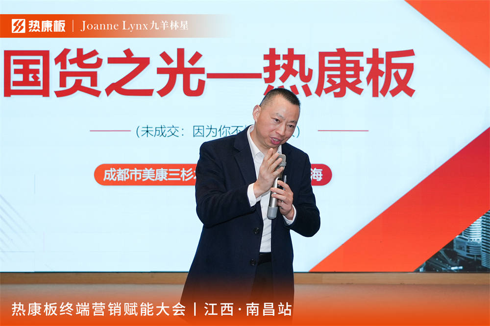 随后,热康板创始人张焕兵在《热康新势 板定蓝海》的演讲中,从行业趋势、消费升级、渠道变革等多个维度,为伙伴们精准剖析了健康板材市场热康板的巨大潜力与发展蓝海,清晰地指明了未来的市场航向。